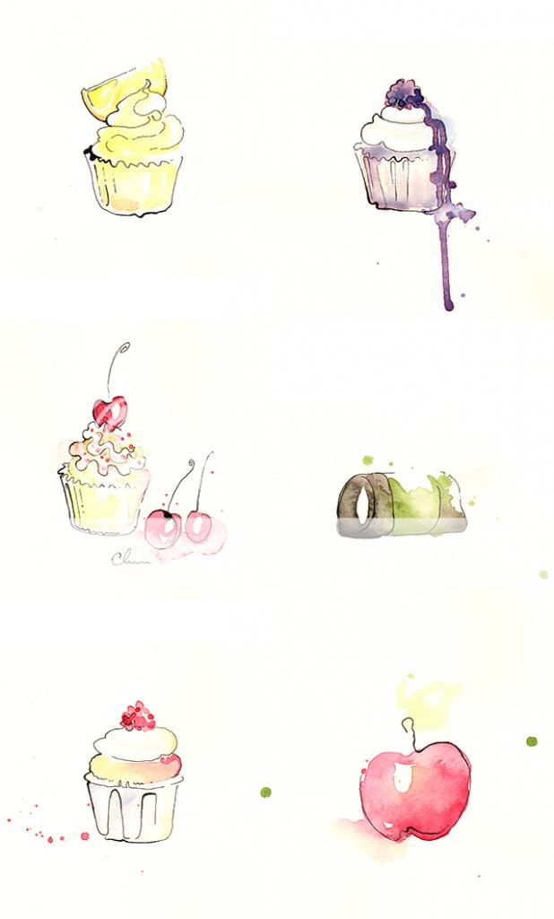 Till detta torsdagstema målade jag sånt jag gärna har till fikat! Jag gjorde ett försök att se lite nyttig ut genom att slänga in ett äpple på sista platsen hehe.
